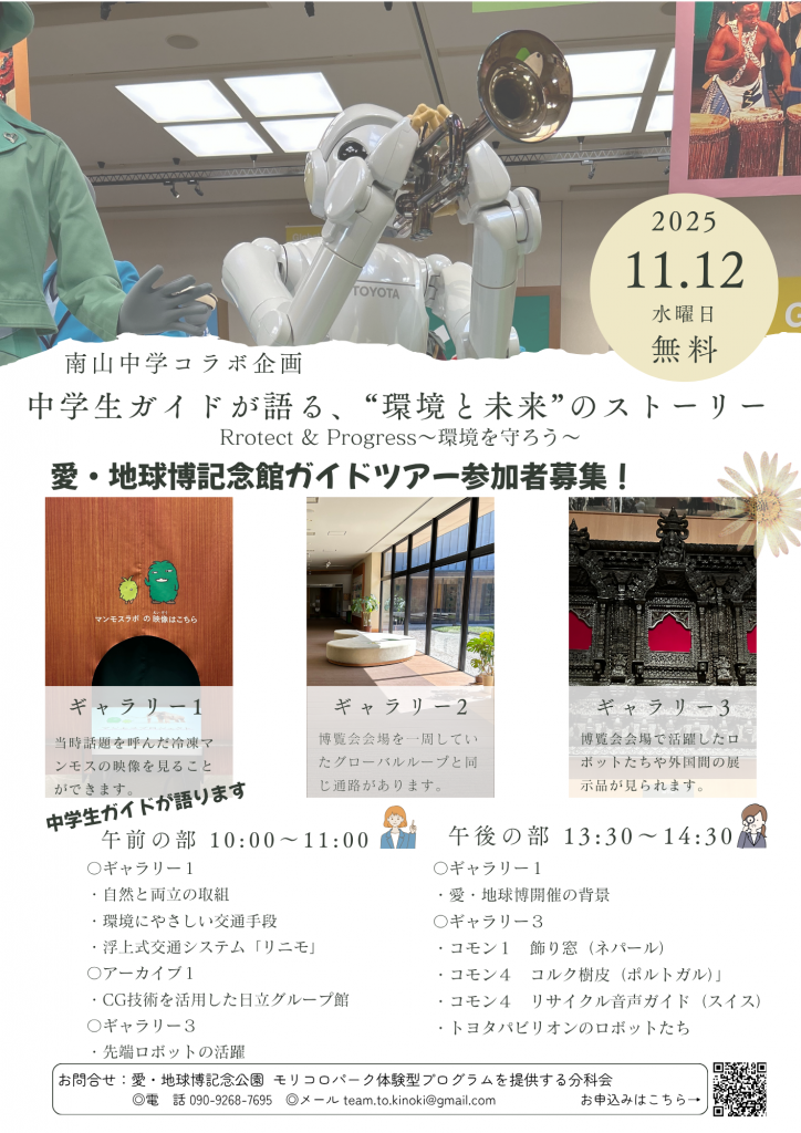 中学生が愛・地球博記念館でガイドツアーを行います。