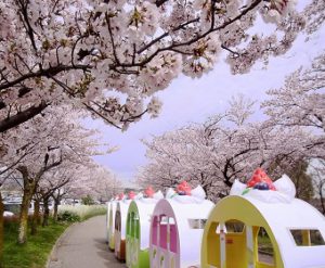 ↑ 北駐車場沿い桜並木とスイーツトレイン