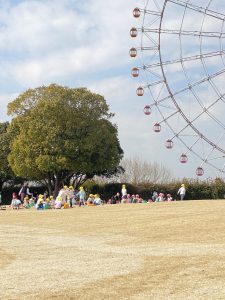 今日は大観覧車近くのこどものひろば、芝生広場に遠足で多数の幼稚園児が来てくれています(^^)