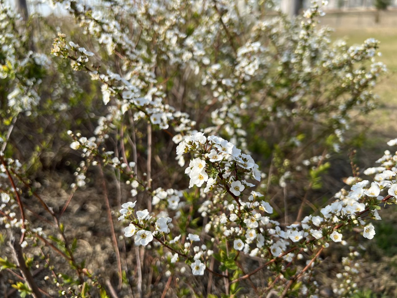 桃の園(碧南側)のユキヤナギが白い花を咲かせ始めました。