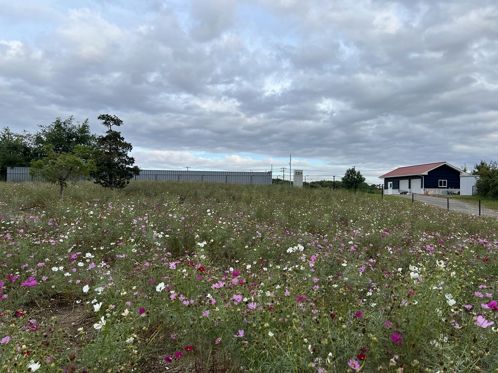 今朝のコスモス畑の様子です。コスモスの花も終わりになりました。