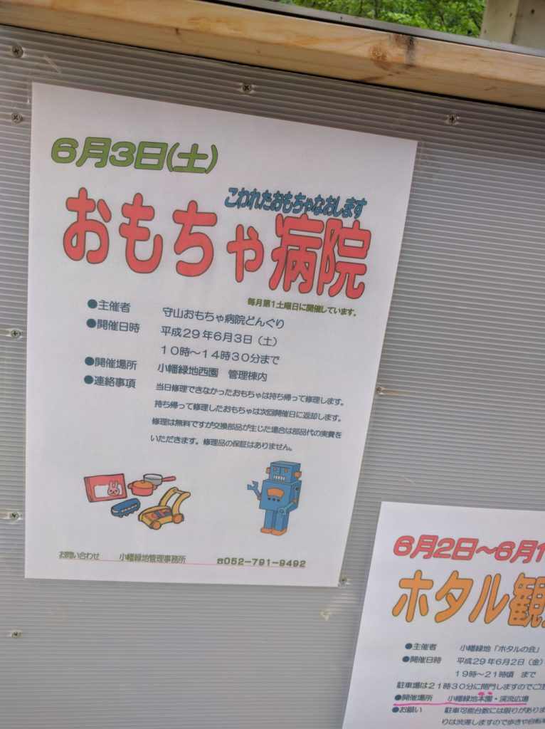 ところで今週土曜日はおもちゃの修理の達人がやってきて、きみの動かなくなったおもちゃをなおしてくれるよ!みんな6月3日はこわれたおもちゃを持って小幡緑地に全員集合!!!
