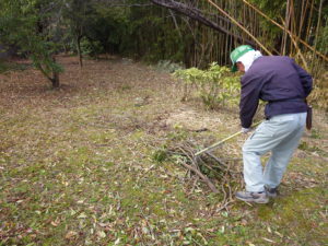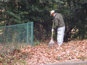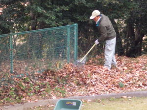 落ち葉を片づけてます