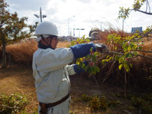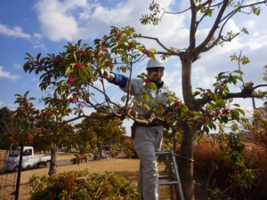 ハサミを使い細かい剪定を行ったり等々