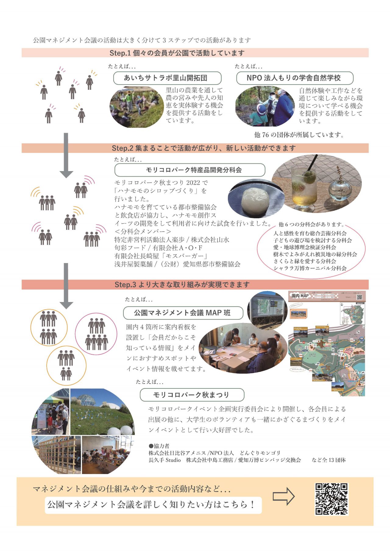 公園マネジメント会議の詳しい内容につきましては、下記チラシをご覧くださいませ。