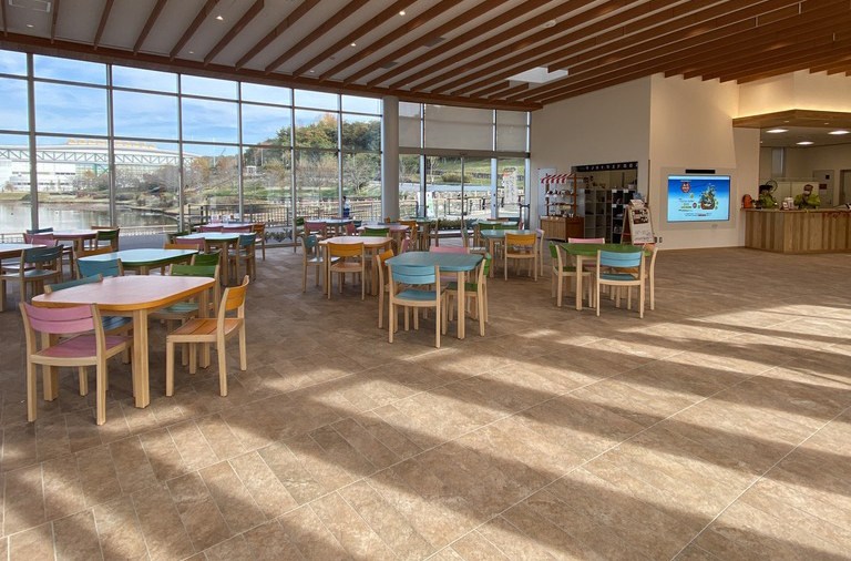 愛知県児童総合センター、大観覧車の近くにある休憩スペース。モスバーガーも併設されています。(ご利用時間:17:00まで)