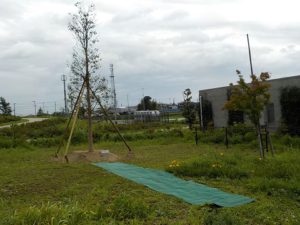 安城ロータリークラブより、楠木1本の寄贈植樹式が小雨の降る中挙行されました。