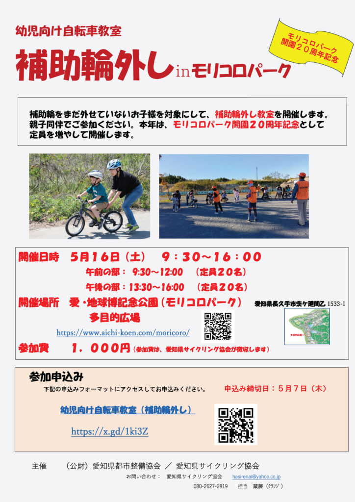 ▼幼児向け自転車教室 補助輪外しinモリコロパーク▼