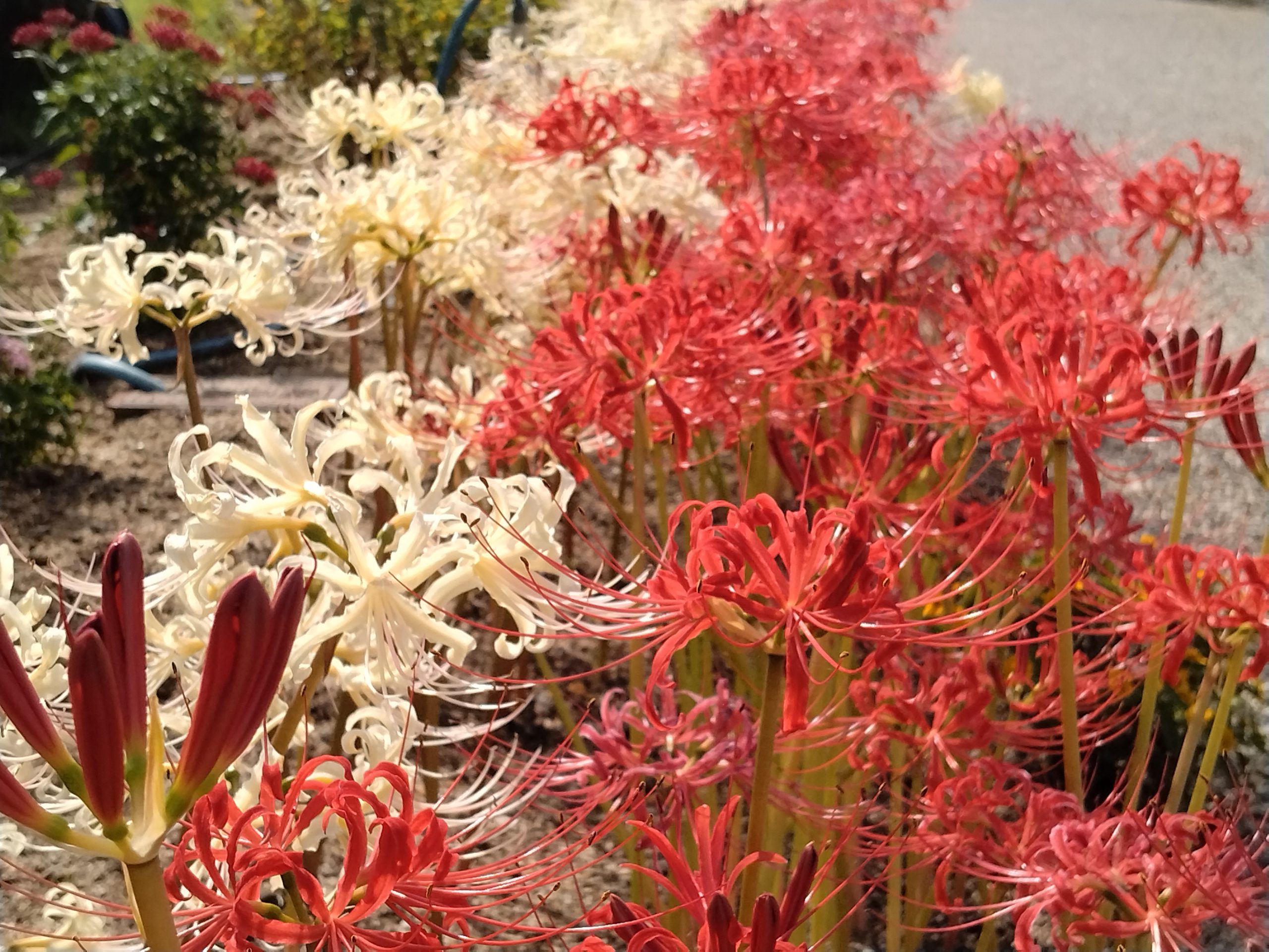 なごみの里の西側、ハス池周辺の園路沿いの彼岸花も、今が見ごろです☆