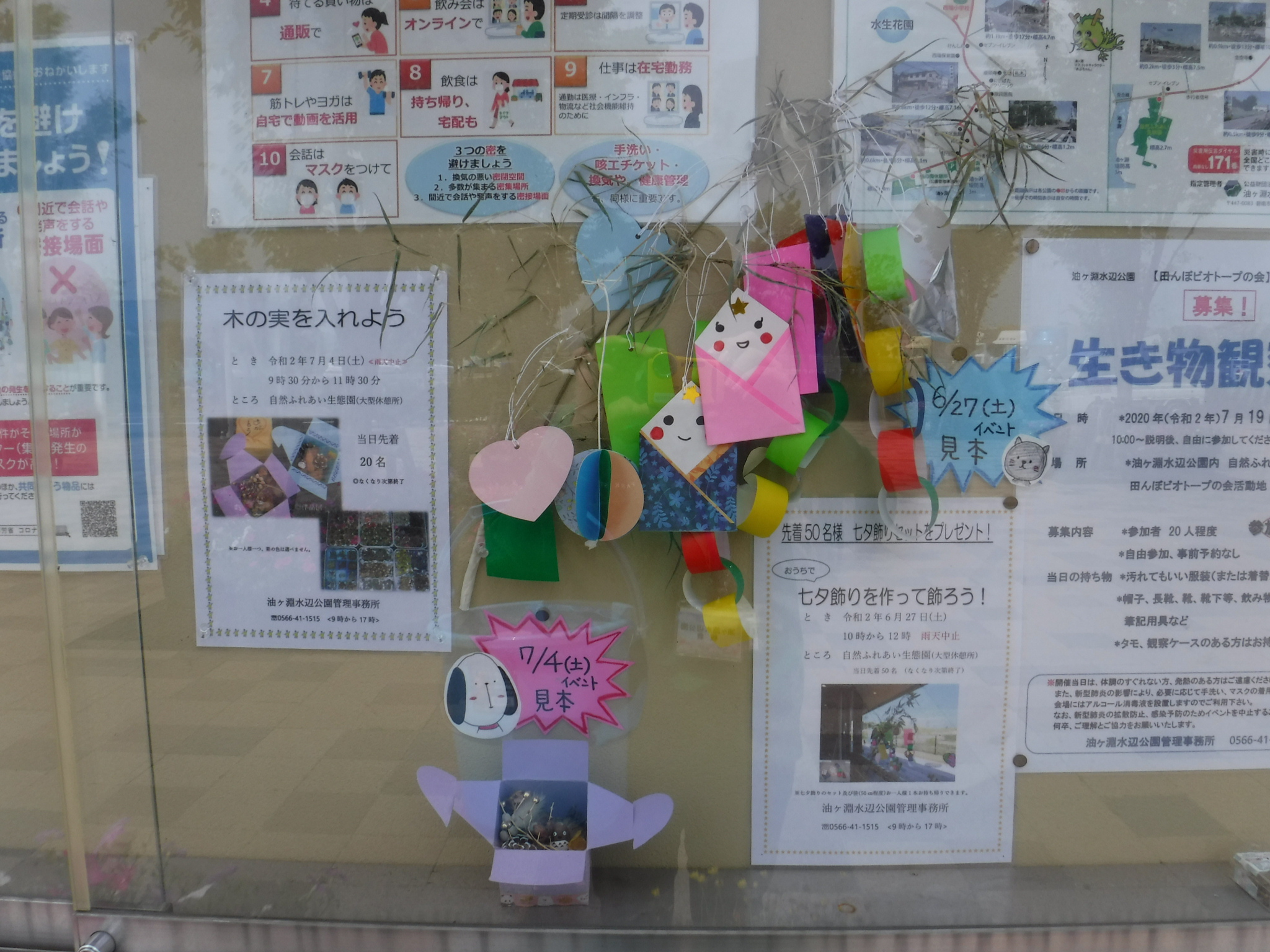 掲示板にイベント見本展示しました。「自然ふれあい生態園(安城市)」