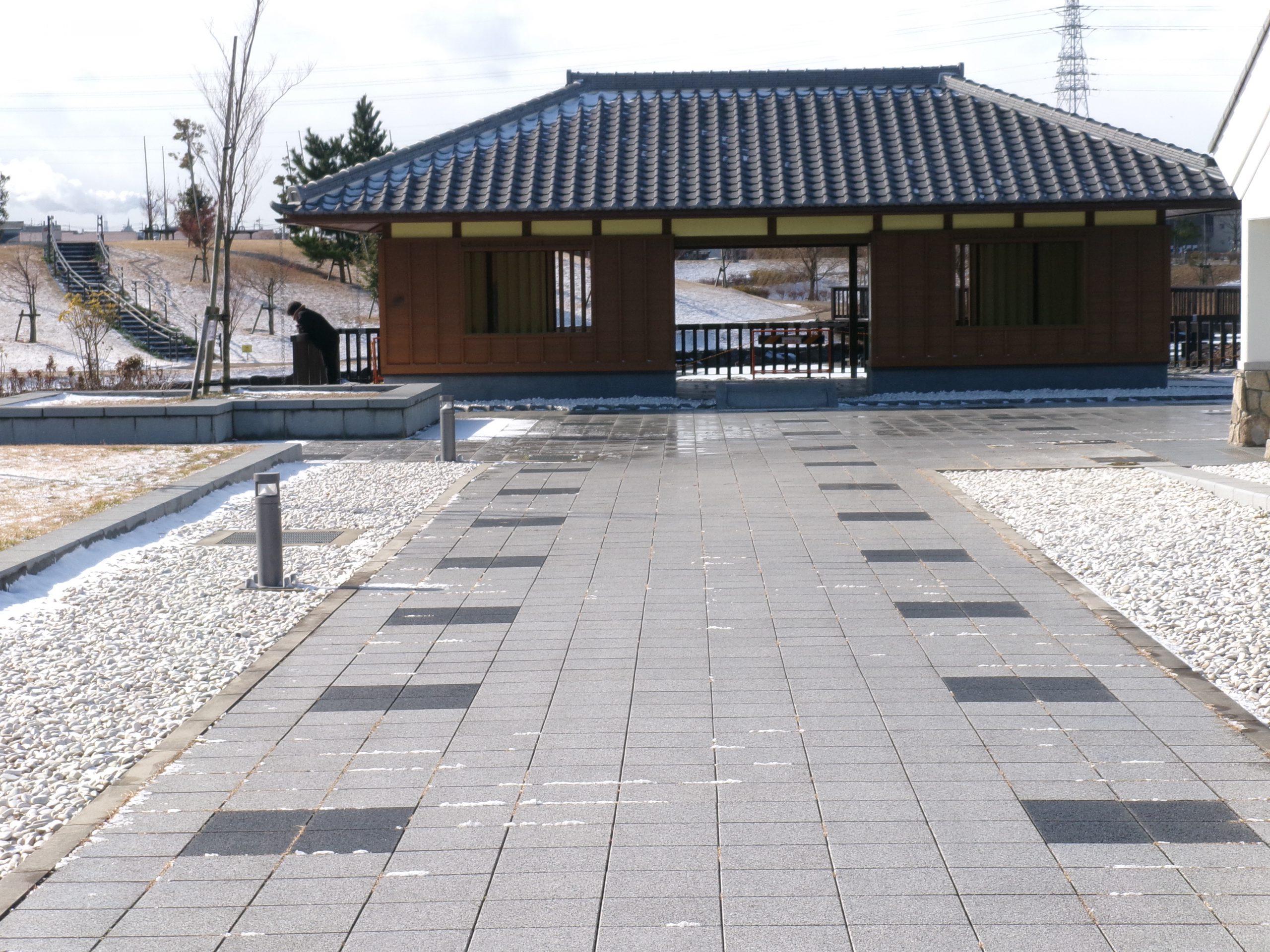 気温が低く日陰、斜面、階段など滑りやすいところがありますので、足元に注意して雪景色をお楽しみください。