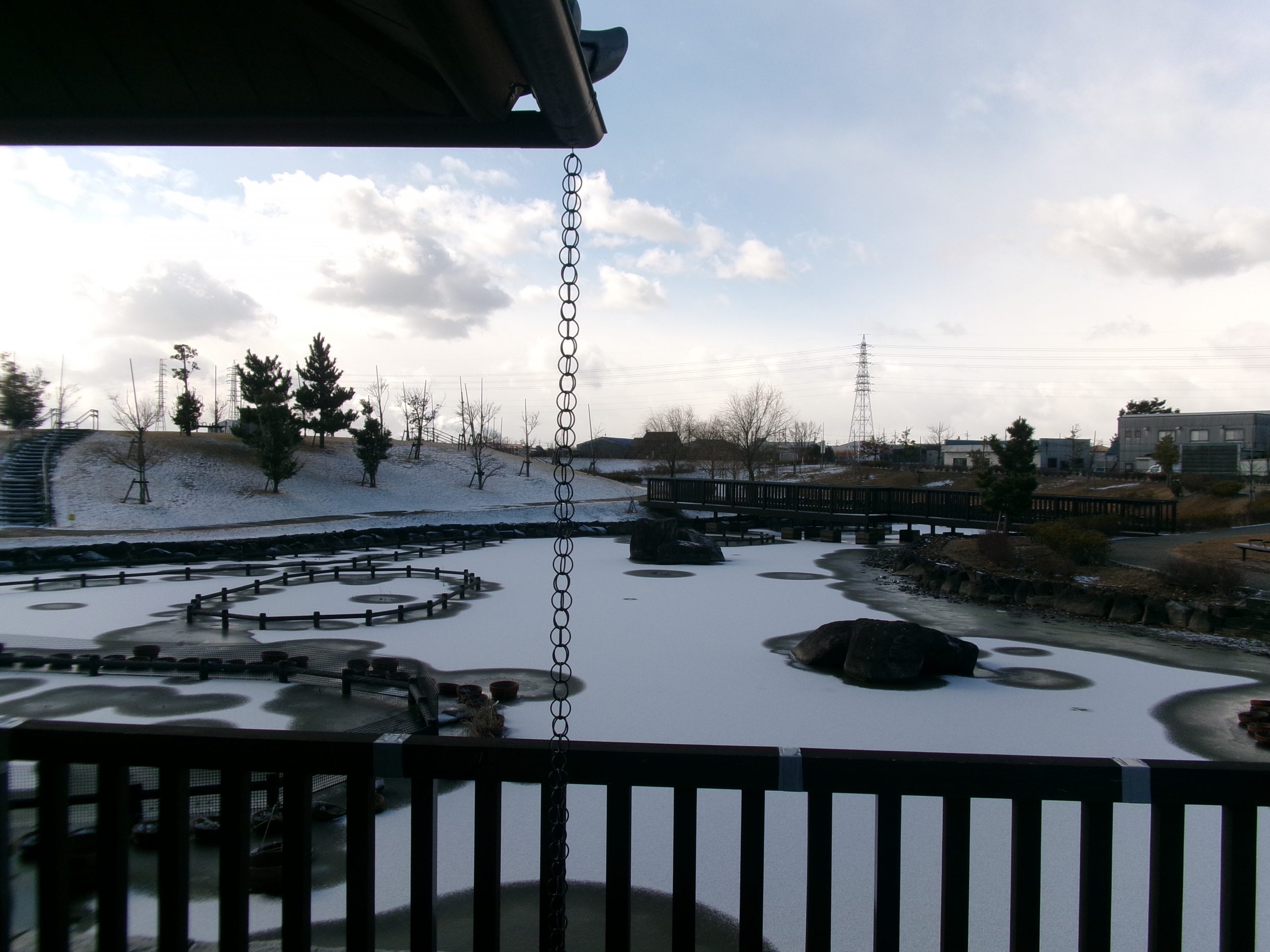 早朝には薄く雪が積もりましたが、現在昼近くには陽があたり溶けてきました。