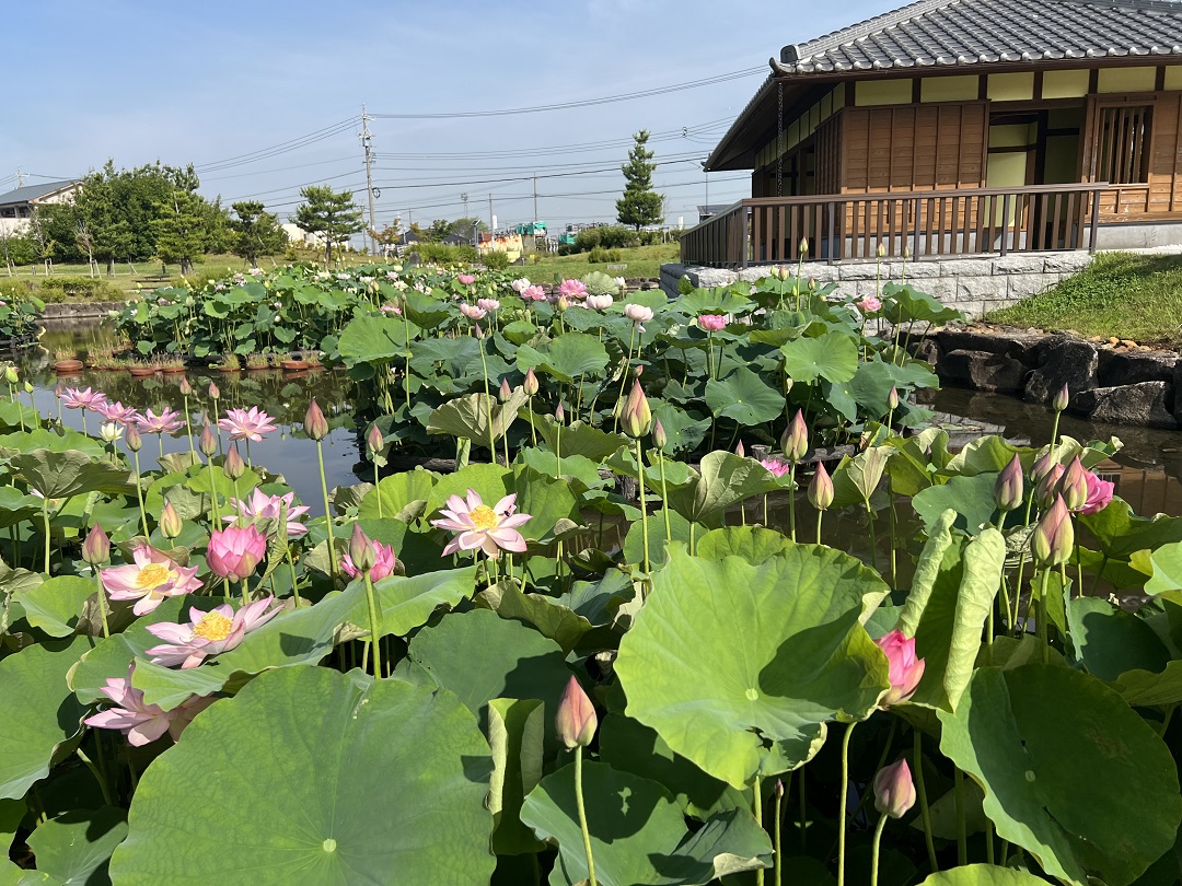 6月17日 水生花園のハスの状況です。見ごろになりました。
