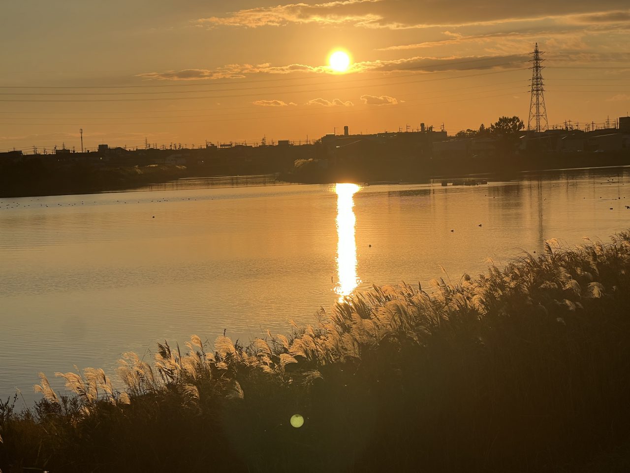 夕日の沈む位置は季節によって変わります。今の時期は夕日が油ヶ淵にきれいに写りこんでいますよ。