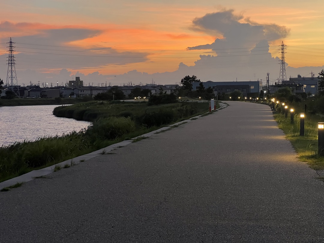 日中に比べ、夜は少し涼しくなりましたでしょうか。公園から見た油ヶ淵の夕焼けをご紹介します。