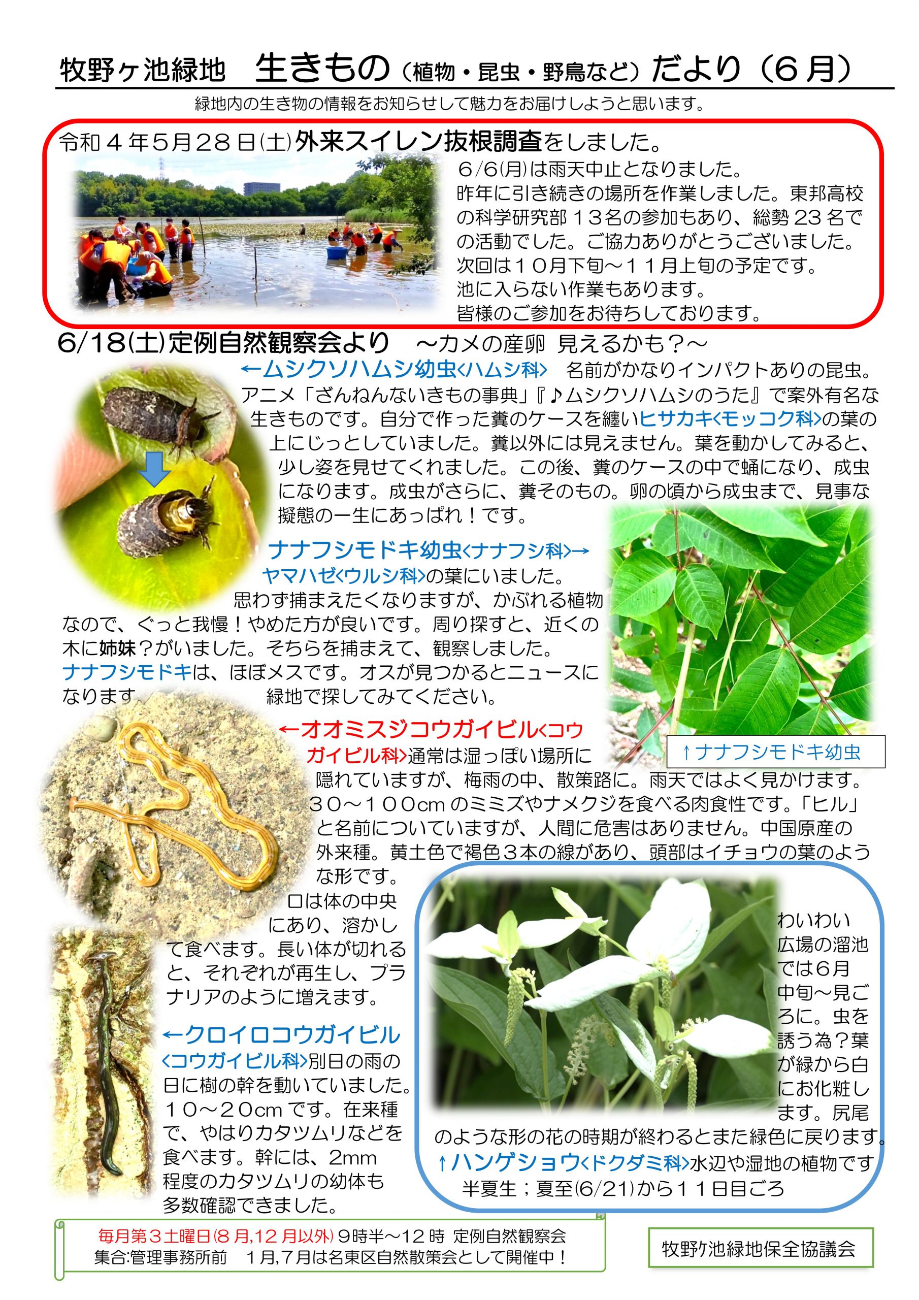 【お知らせ】牧野ケ池緑地 生きものだより(6月)