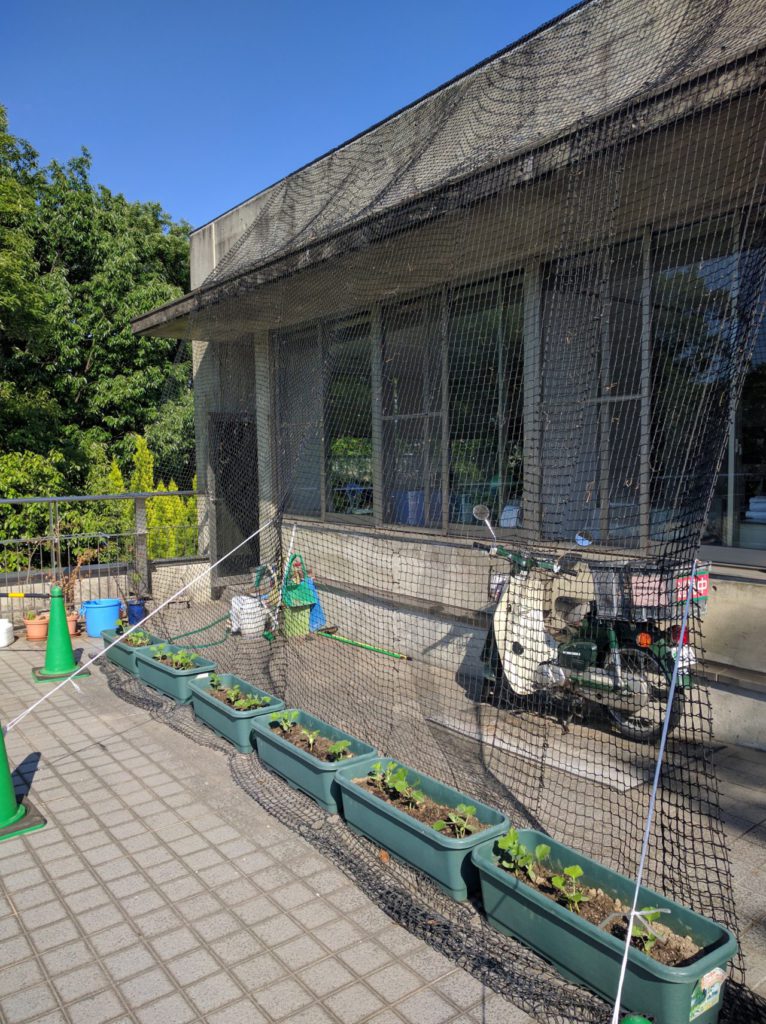 今年もサンサン会様から瓢箪の苗をいただきましたので、さっそくプランターに移して管理事務所の窓に設置しました!今後が楽しみです。