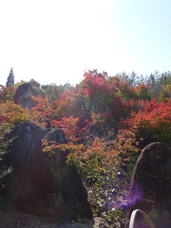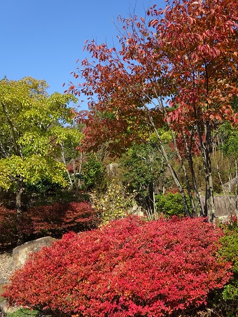 「導入の庭」あたりも「ドウダンツツジ」が赤くなり始めています。