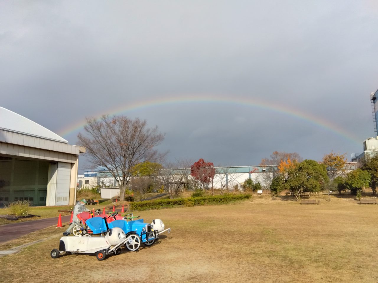 虹がでました???? 更新日 2023/12/03 14:00頃に東の空に虹が見えました。 本日、おもしろ自転車はすいており、お好きな自転車に乗りやすい状況です。 是非ともフレッシュパークに遊びに来てくださいね。 ご来園お待ちしております。