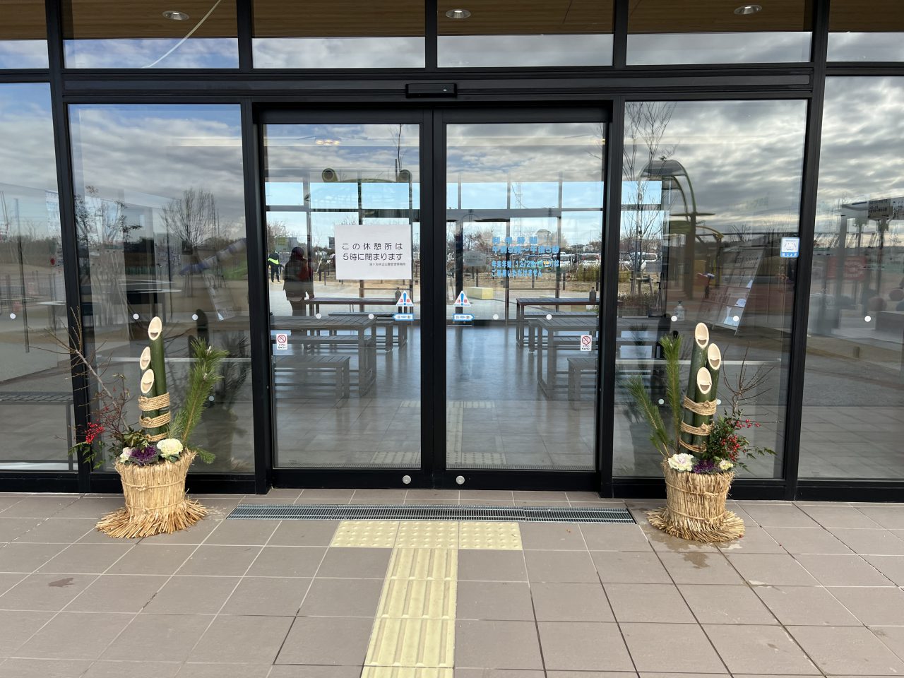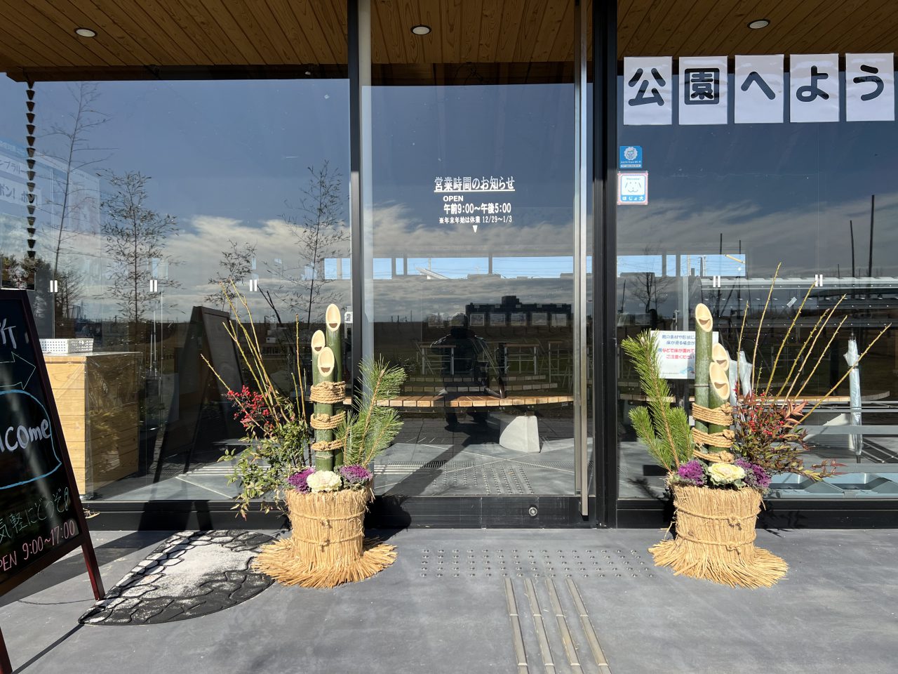 新しい年を迎えるために門松をぶらリン休憩所と桃の園休憩所に設置しました。