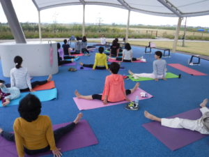 雨が降りそうなお天気でしたが15名の参加者が楽しくヨガをしてリフレッシュしました