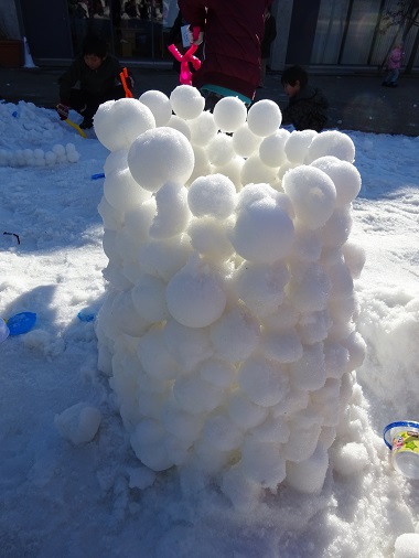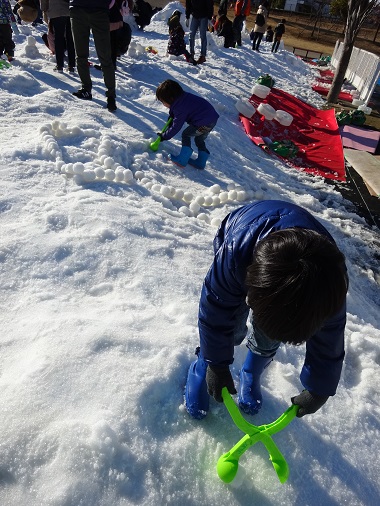 チビッ子たちもサクサクと雪玉を製造していきます。