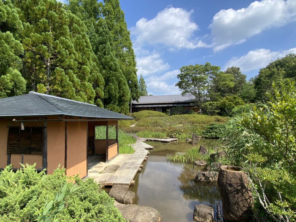 거기서이어지는야츠하시,츠치하시 를옆으로보고대각선으로보이는차실에이르기까지의노지의경치는아이치 에도연고의「이세의옛이야기」의절경입니다.