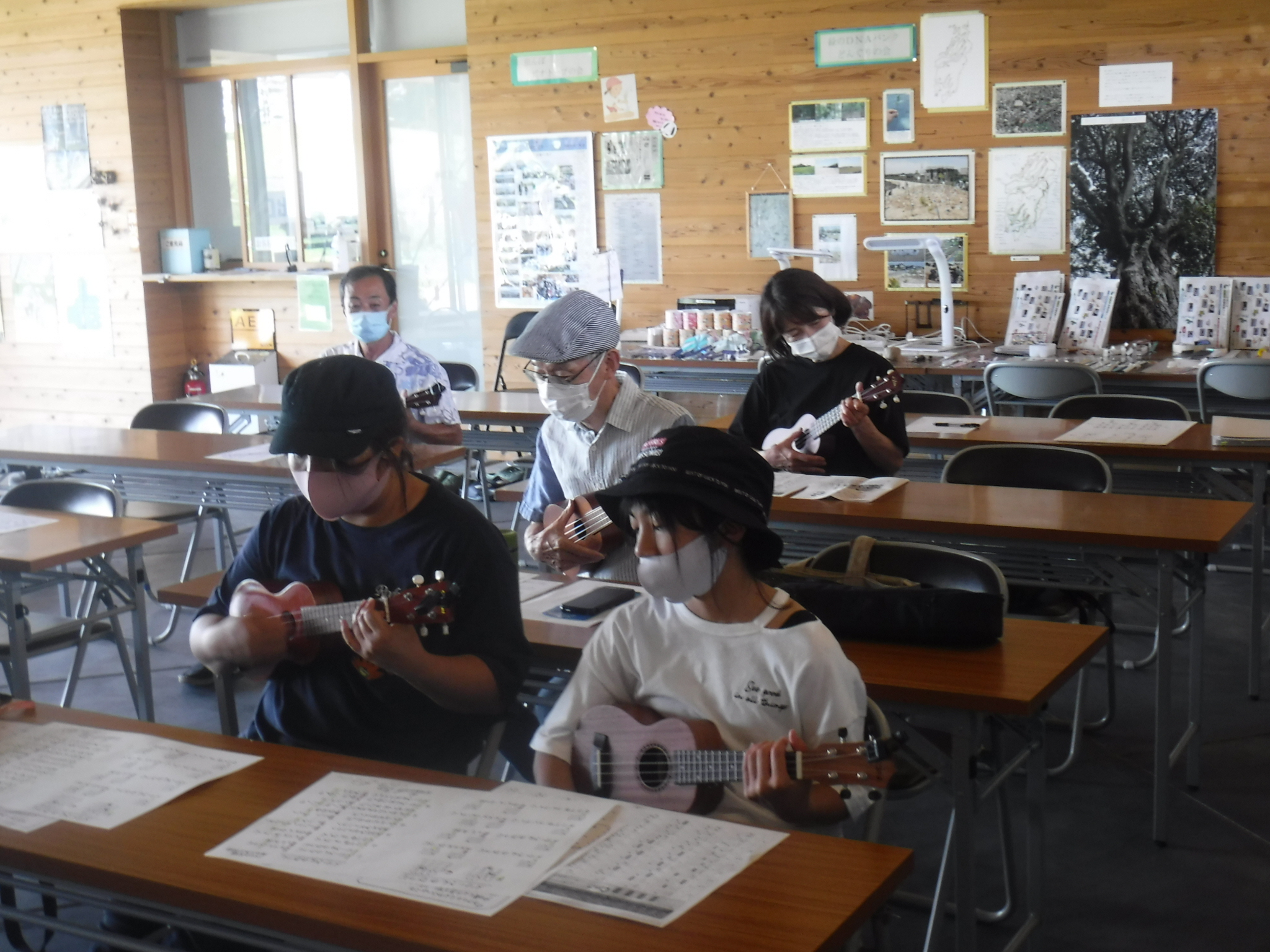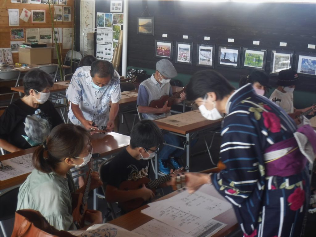 R3/7/17『ウクレレしょうべいとウクレレを楽しもう!』を開催しました 更新日 2021/07/17 ウクレレ初心者の方を対象に教室を開催しました。 楽器の持ち方や指の使い方などから順に説明し、1時間半後には簡単な和音を弾き楽しく合奏しました。 次回開催日は未定ですが、身近な楽器をみんなで楽しみましょう。