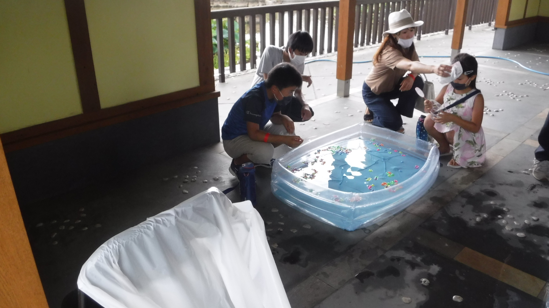 R3/8/21『油ヶ淵の夏』を開催しました 更新日 2021/08/22 第1回目の『油ヶ淵の夏』を開催しました。 おもちゃ入り氷柱、ゴム金魚すくい、水鉄砲射的、 缶バッジ作りなど、いずれも子供たちに大人気でした。 ご参加くださいましたみなさま、ありがとうございました。