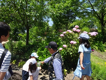 インタープリターと一緒に園内をまわる