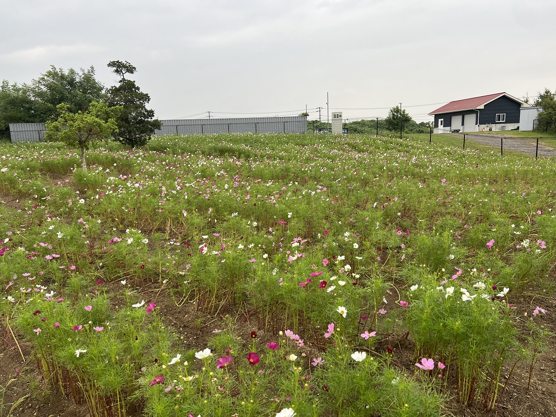 今日は雨ですね。本日の自然ふれあい生態園のコスモス畑の状況です。