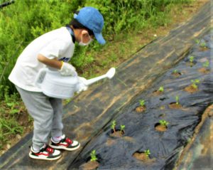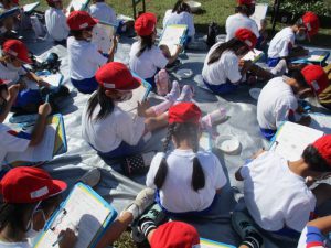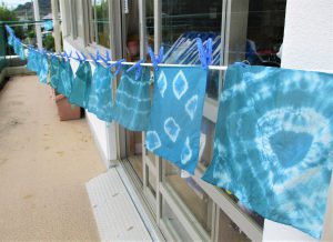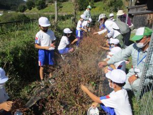 この藍は、令和4年5月6日に3、4年生が植え付け、夏の日差しをいっぱいに浴びて大きく生育し、9月22日には5、6年生に葉を使った藍染めの体験をしていただきました。