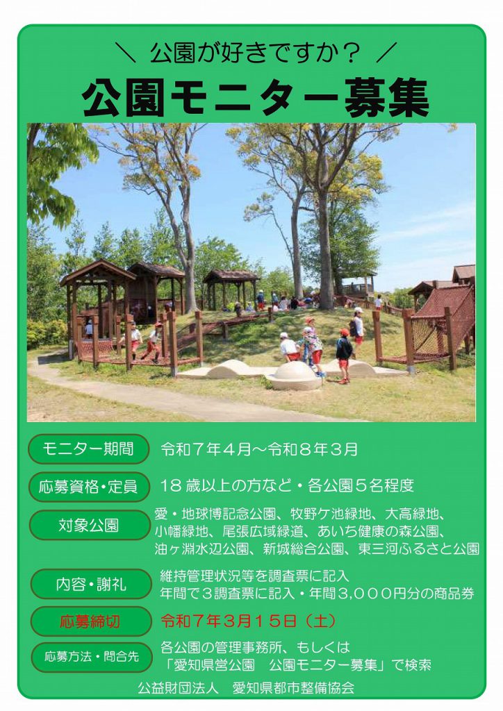 【お知らせ】令和令和7年度公園モニター募集について