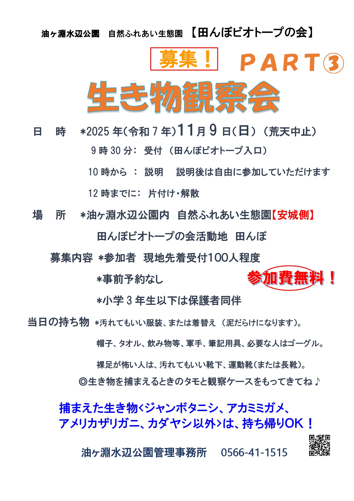 『生き物観察会 PART③』【無料】