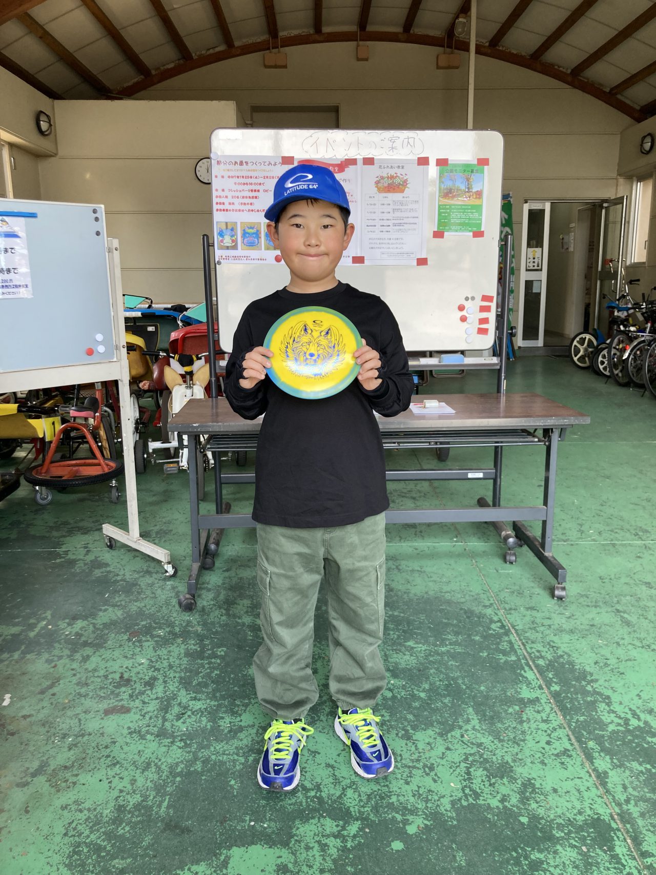 写真の川口君は2年前の夏に、ここフレッシュパークでディスクゴルフを始め、今では全国各地の大会に出場し、関西オープンでは優勝するなど活躍していると聞きました。