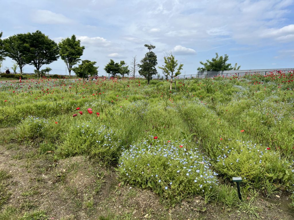 ネモフィラに代わりポピーの花がたくさん咲き始めました。