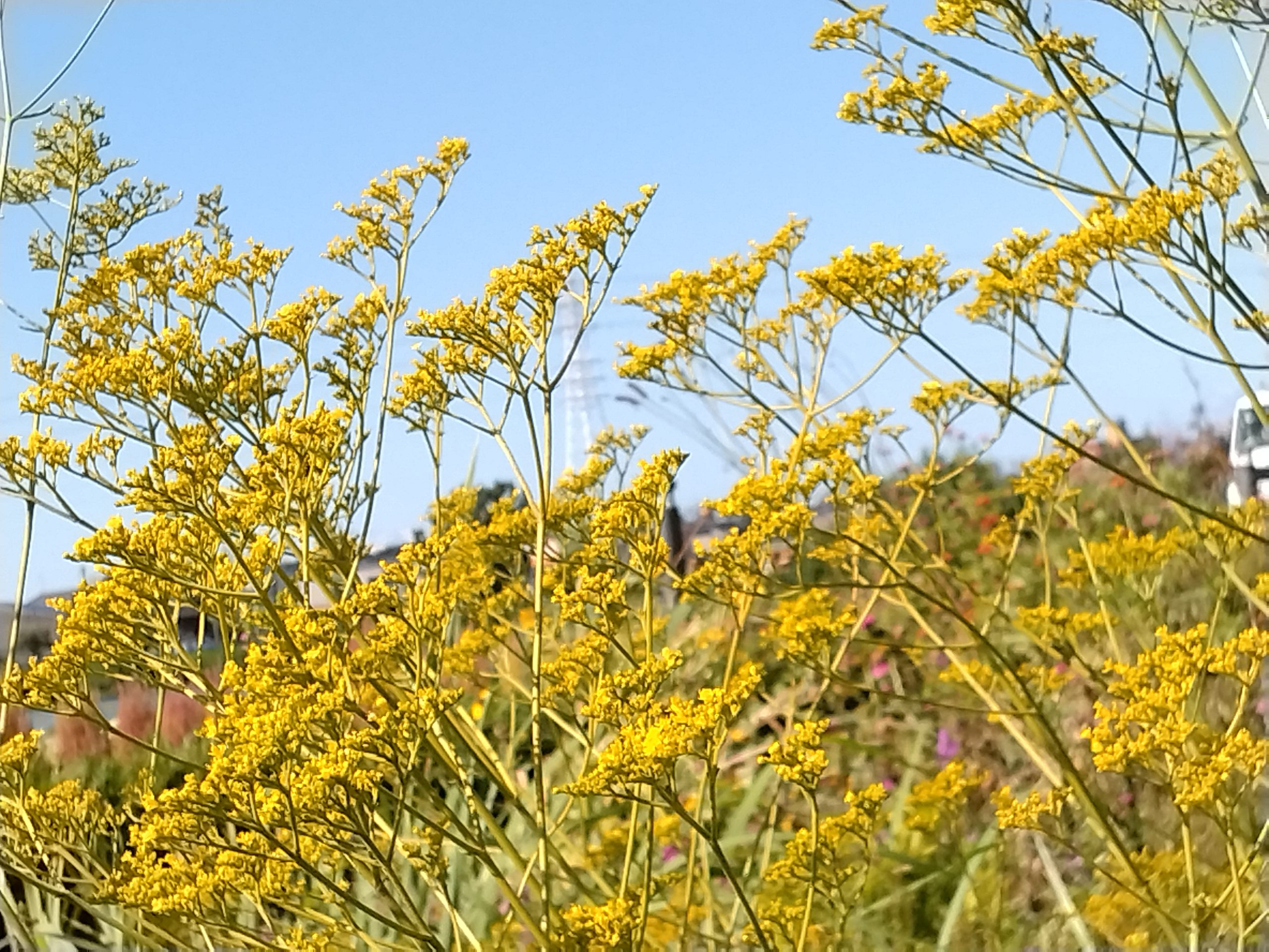 ずっと咲いていますが、澄んだ秋の青空黄色が映えますね!