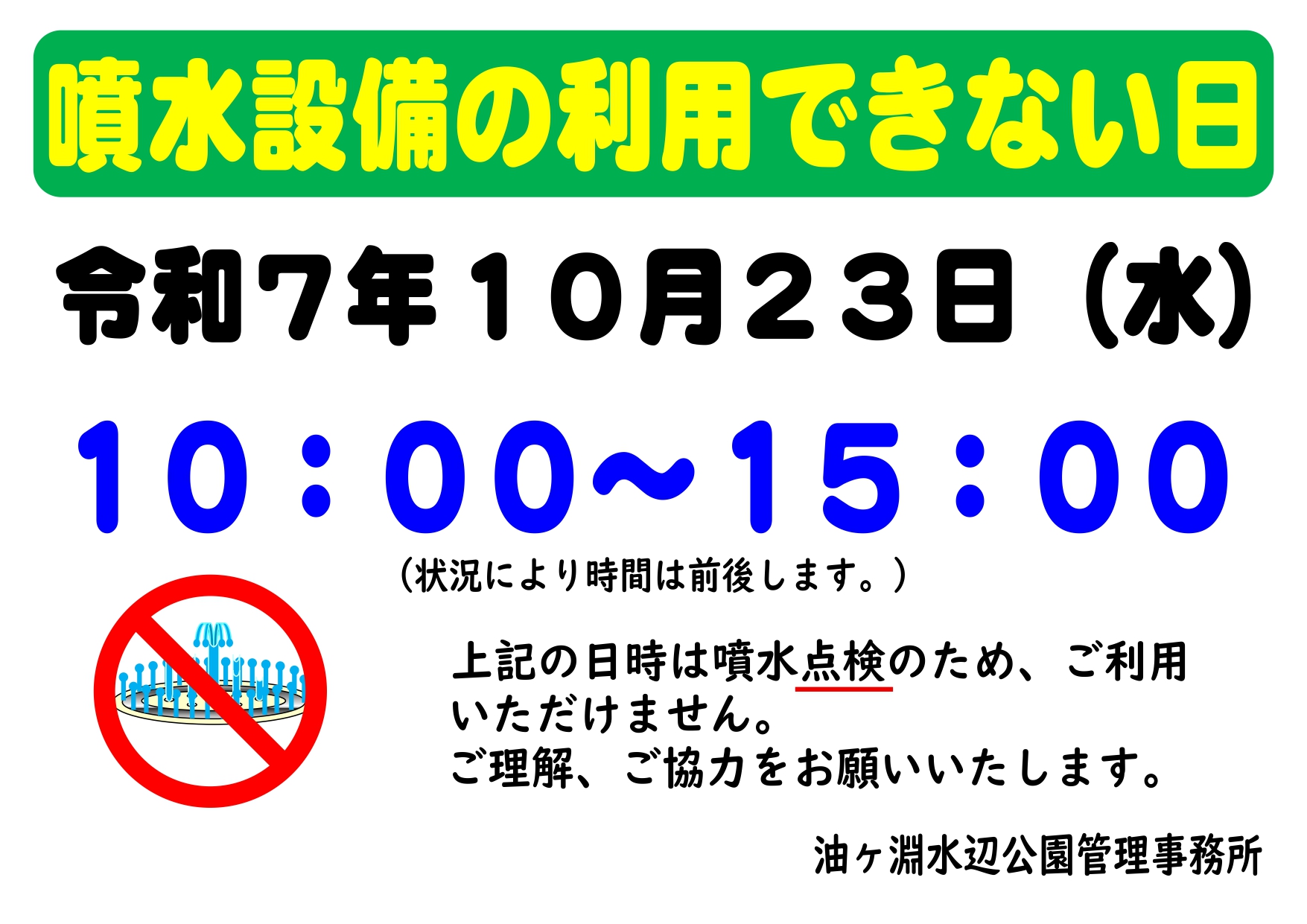 【お知らせ】令和7年10月23日(木) 10:00~15:00 噴水施設が利用できません