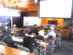 みなさんの句を表示するモニターを、前回からプロジェクターに変更しましたので