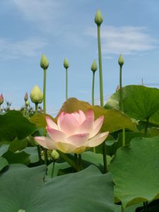 やっとすっきりとした青空とともにハスを愛でることができました!