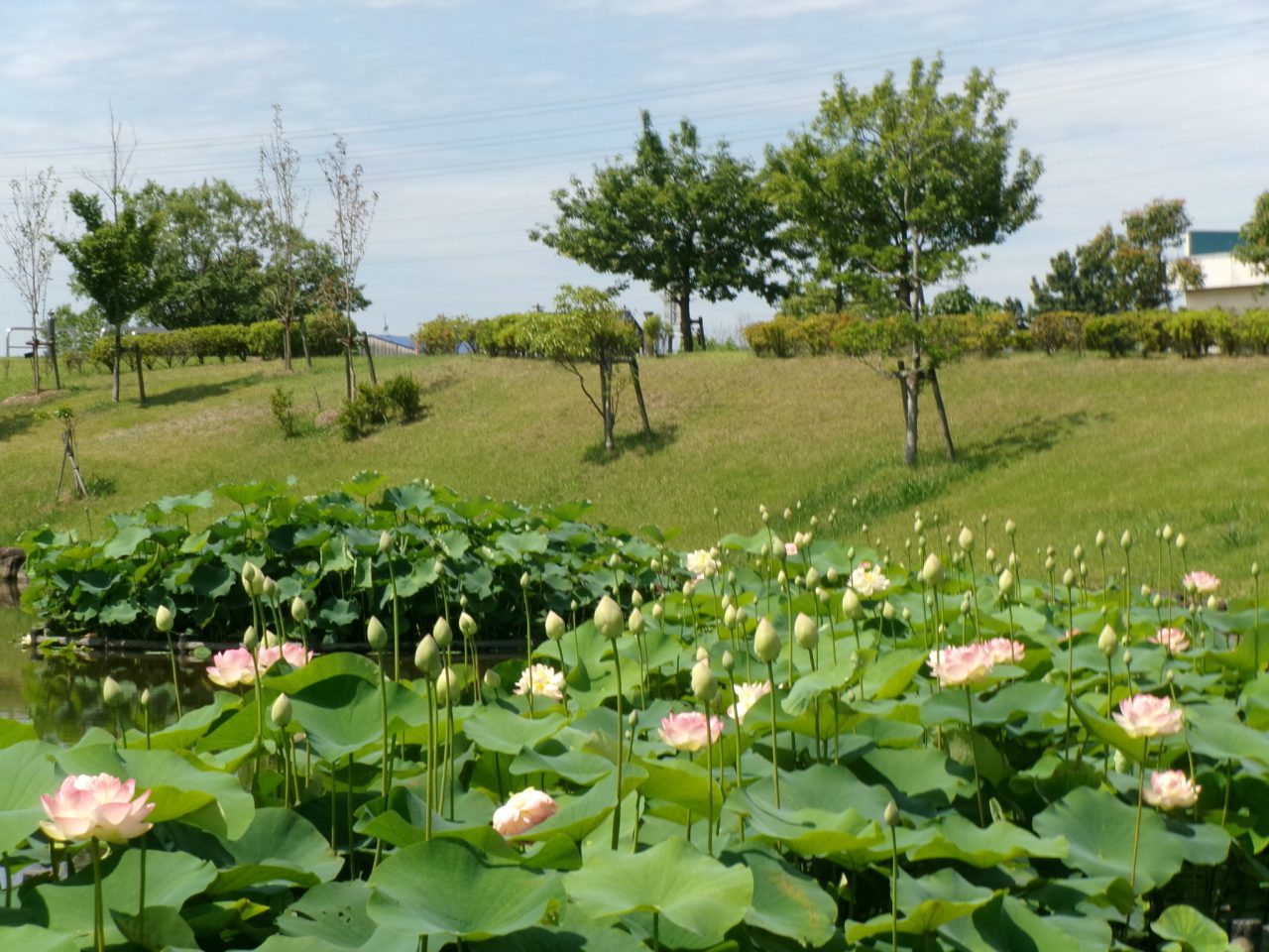 ハス池全体で見ると2割ほどの開花状況かと思います♪