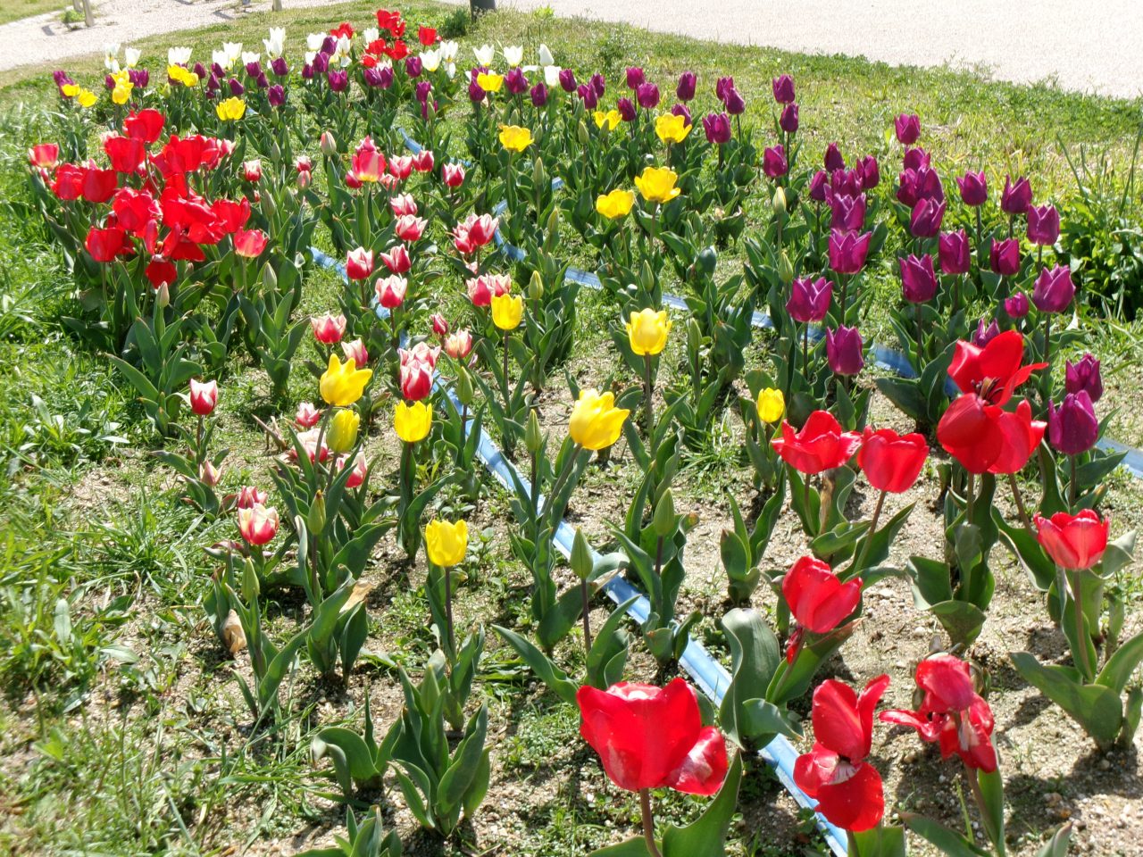 チューリップが見ごろです!〔4/15〕 更新日 2025/04/16 園内のチューリップが満開になり見ごろを迎えました♪ ふれあい生態園(安城側)のチューリップは、ふれあい福祉園 ガイアのみなさんと 安城学園高校のみなさんが球根を植えてくださったものです☆ 水生花園(碧南側)のチューリップは、油ヶ淵なごみ会さんが 球根を植えてくださいました☆ 天気のよい日は、お子さんやワンちゃんとともにチューリップの写真を 撮られているお客様を連日多くお見かけします。 ぜひカラフルなかわいいチューリップを見に来てくださいね! お待ちしています♪
