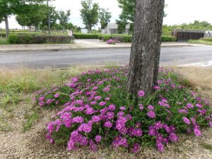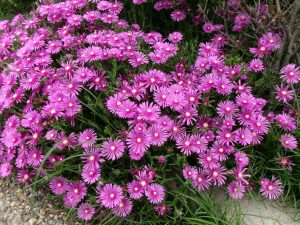 地面を這うようにひろがるマツバギクはすでに満開です!