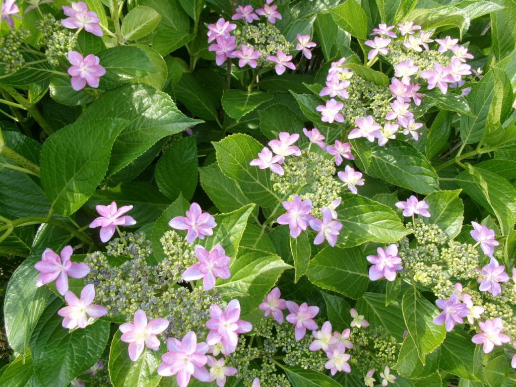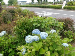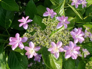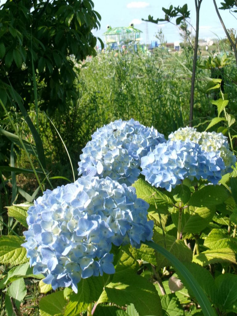 少し前までみどり色のつぼみばかりだったアジサイ