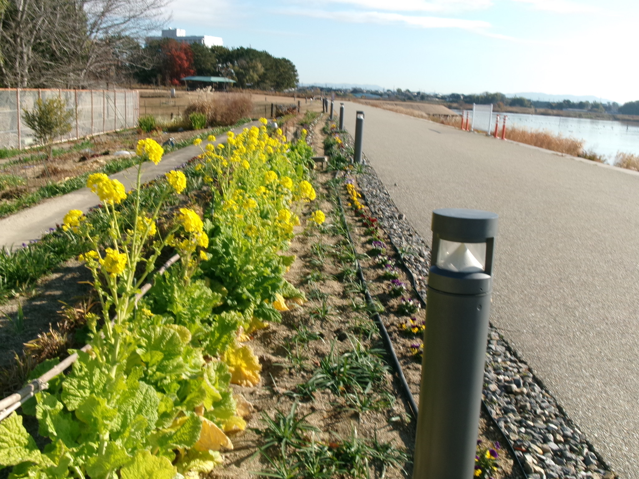 碧南側へお越しの際は、堤防沿いからハス池までを歩いて、菜の花やサザンカなど