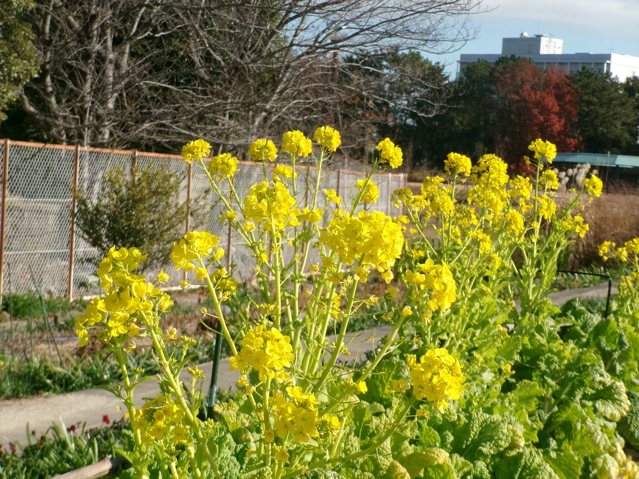 管理事務所周辺の菜の花も咲きはじめていて、咲いていない株もつぼみをつけていますので