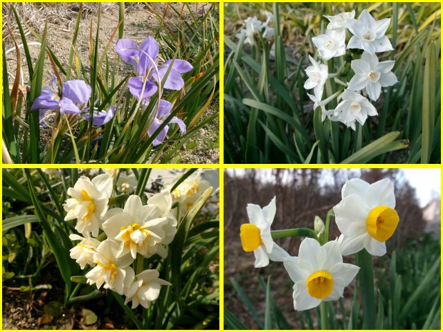 菜の花、寒咲きアヤメ、水仙・・・それにスイートピーも咲きはじめています!