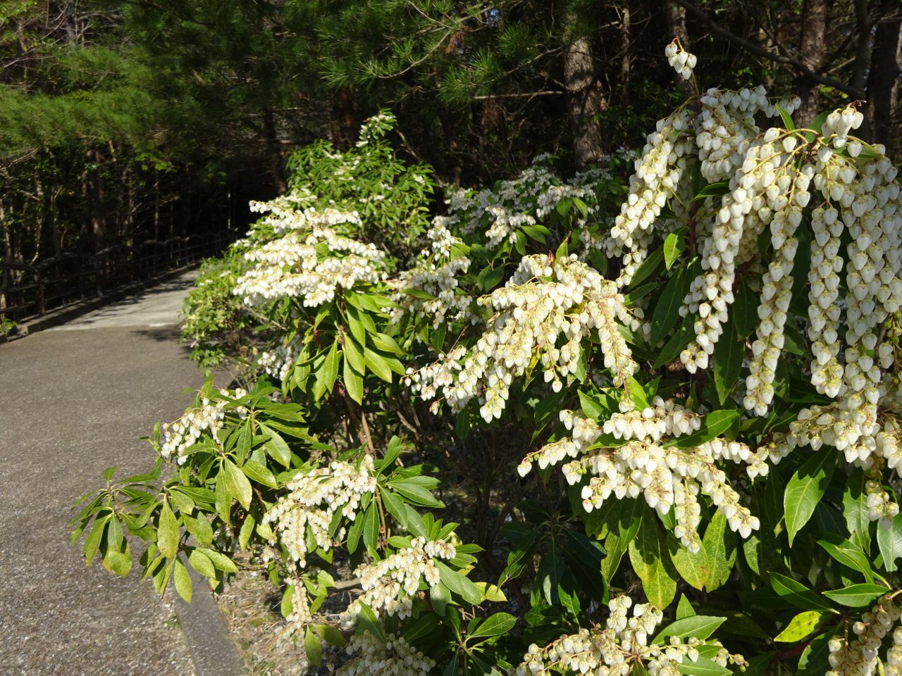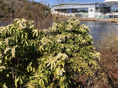愛・地球博記念館前から、青春の丘方面へ向かう小道の脇に「アセビ」が咲いています。