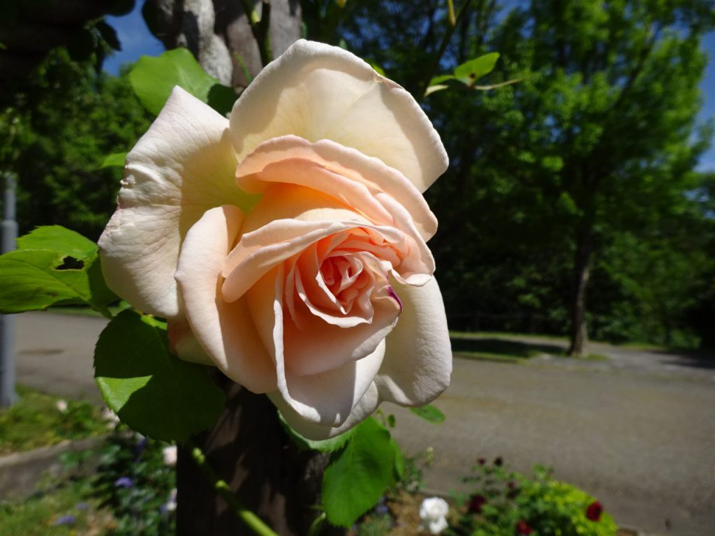大花壇の片隅に「バラ」が咲いているのを見つけました。