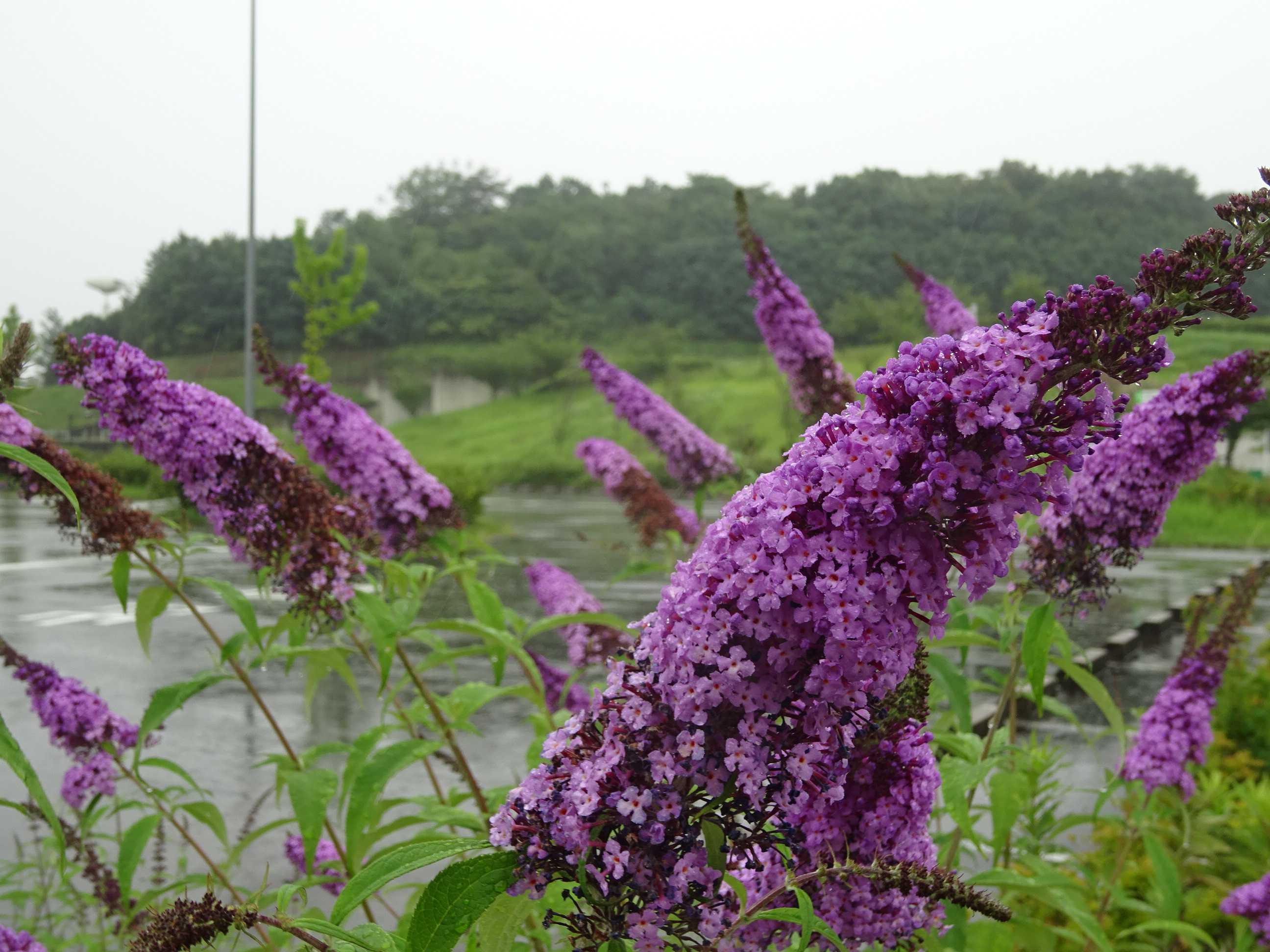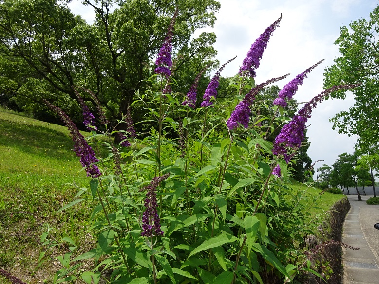 大芝生方面から、こいの池の南側へ伸びる道沿いにブッドレアの花が咲き始めした。